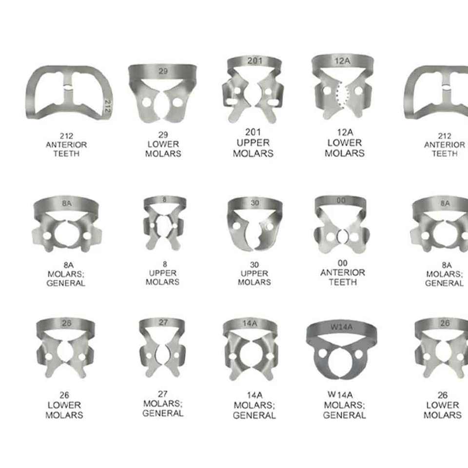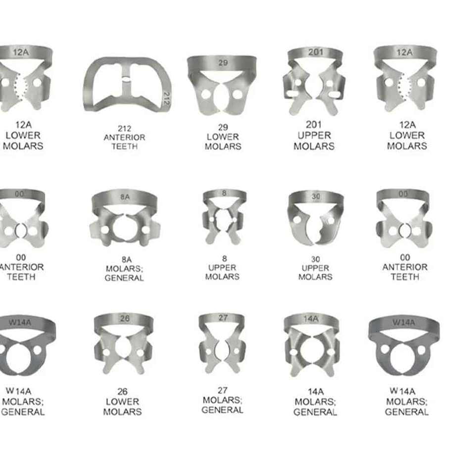 Instrumentos dentales manuales, abrazaderas de presa de goma para endodoncia, juego de brinkers de dientes universales, grado quirúrgico de acero inoxidable autoclavable