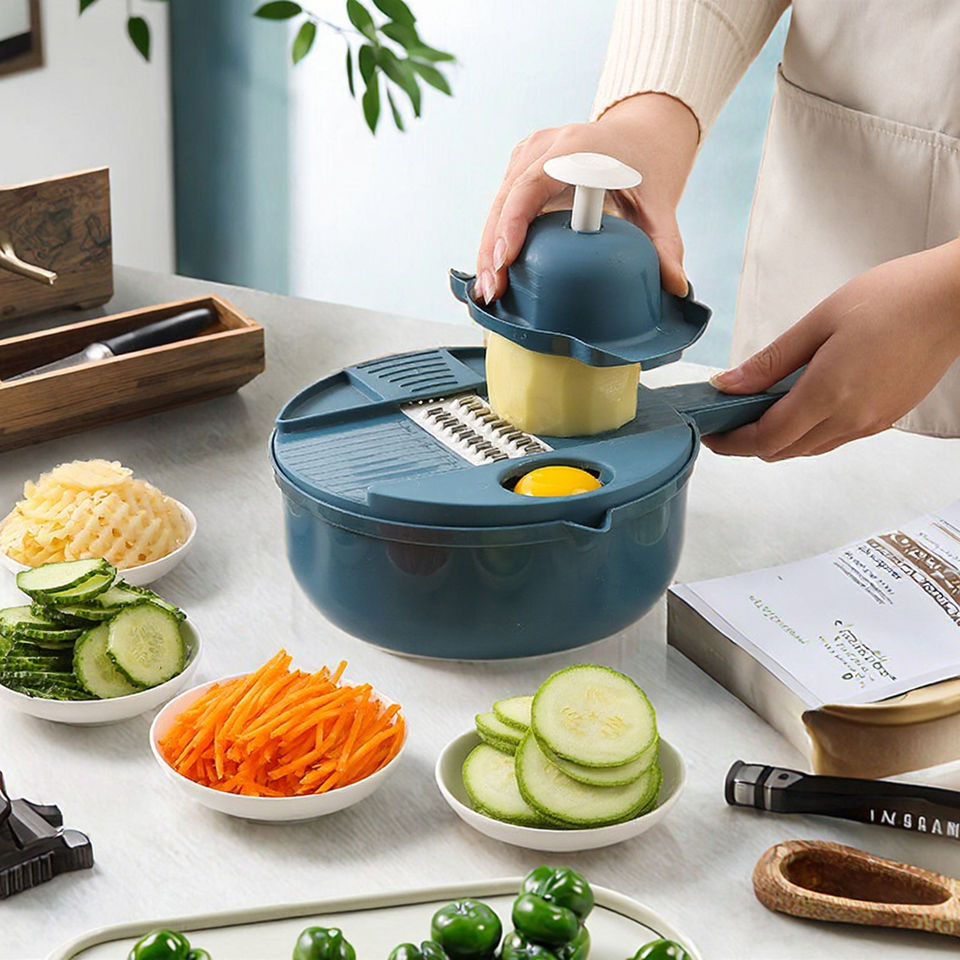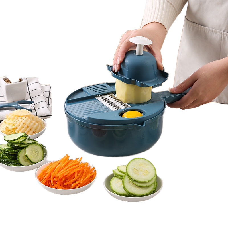 Utensilios de cocina multifuncionales manuales, rebanador de verduras PP y cortador giratorio con escurridor para frutas y verduras