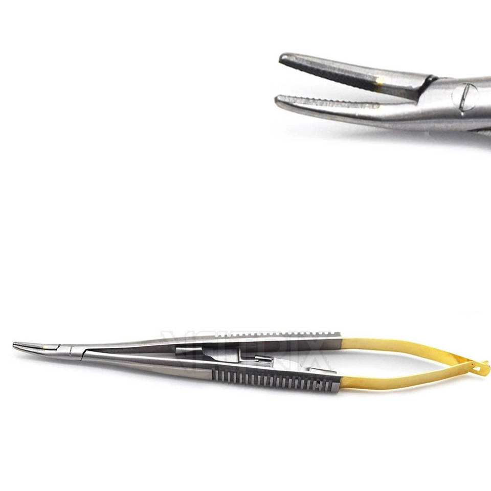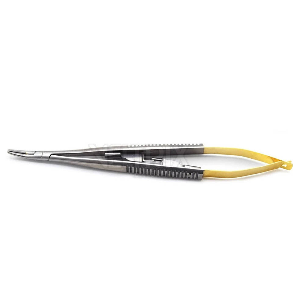 Instrumentos Oftalmológicos Manuales con Fuente de Alimentación, Portaagujas Curvo Castroviejo de 11 mm con Puntas Cónicas