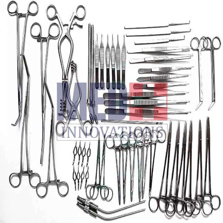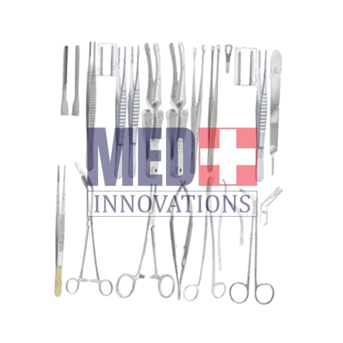Med Innovation MI-3853 Juego de Instrumentos de Cirugía Vascular de 97 Piezas con Fuente de Alimentación Manual, Certificado CE, Garantía de 2 Años