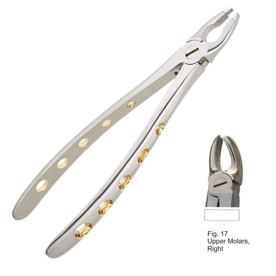 Fórceps de extracción manual de dientes, Molar superior derecho, instrumento dental de acero o acero inoxidable, tipo duro, patrón inglés
