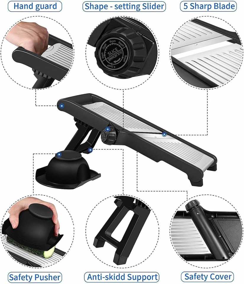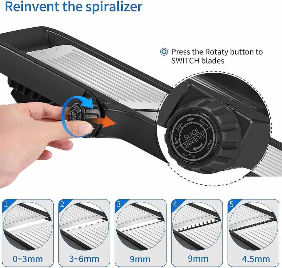 Cortador de Verduras Manual para Cocina, Mandolina para Verduras con Guantes de Seguridad