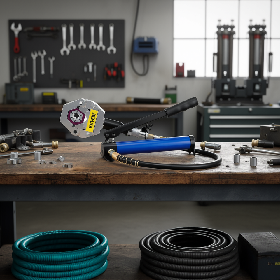 Prensa manual para mangueras con bomba de aluminio de 300 bar y carrera de 35 mm para mangueras hidráulicas de cobre