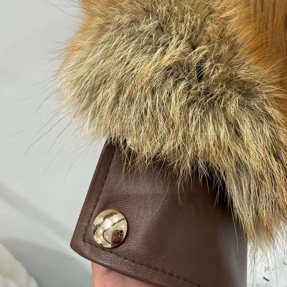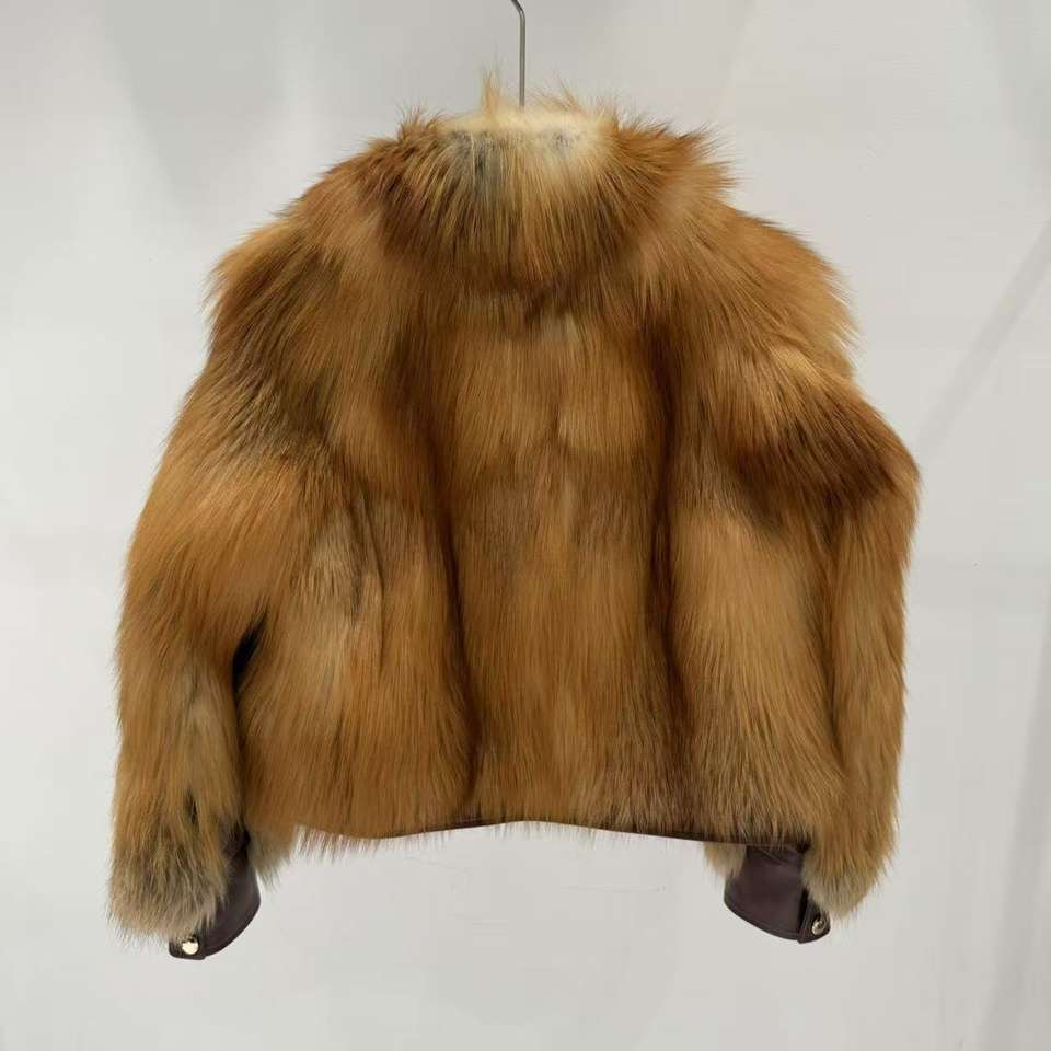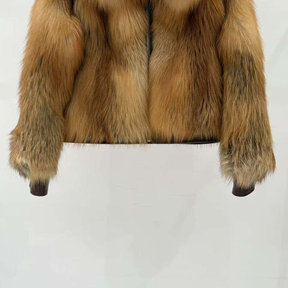Fabricación de Abrigos de Piel Natural para Mujer, Abrigo Corto de Piel de Rusa Roja Real con Cremallera