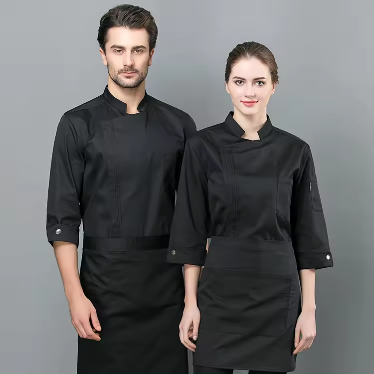 Fabricación personalizada de poliéster algodón Chef chaquetas transpirable cocina Hotel restaurante cafetería Catering Chef camarero