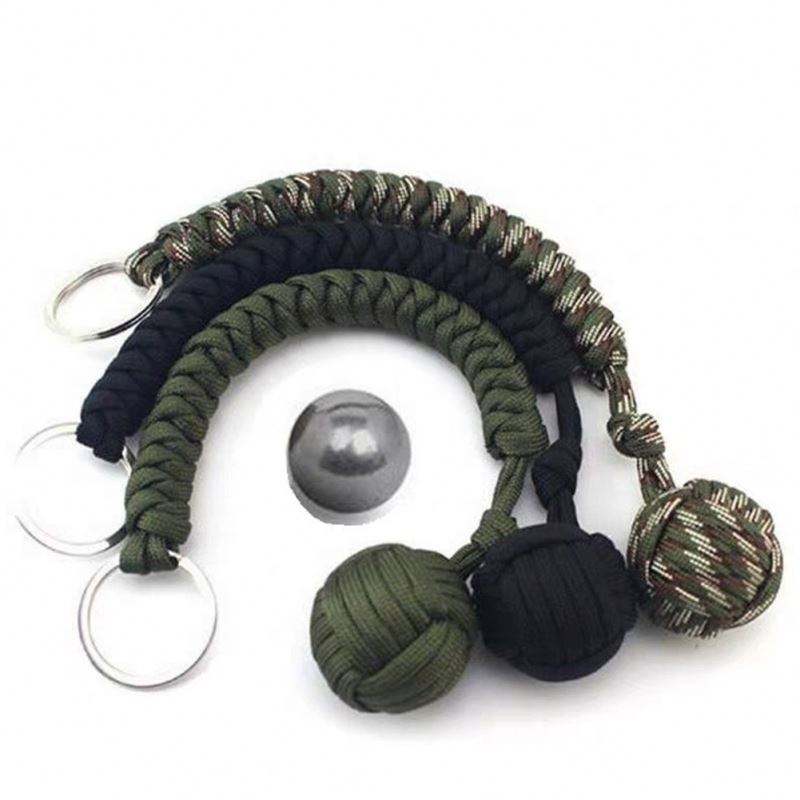 Fabricación directa de metal multifunción, anillo de llavero de cuerda interior de bola para autodefensa/