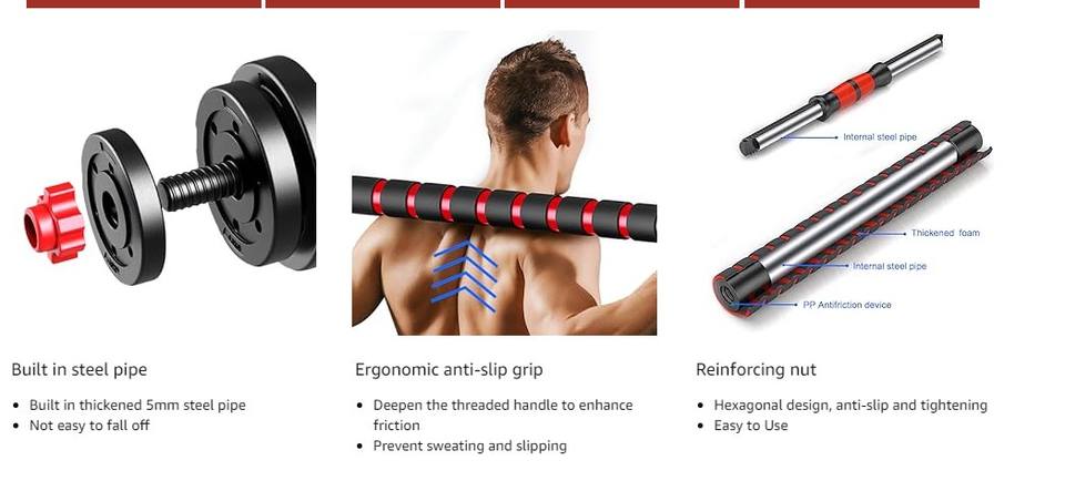 Mancuernas Ajustables Multifuncionales para Uso Doméstico, Equipo de Gimnasio Silencioso para Levantamiento de Pesas, Barra de Pesas