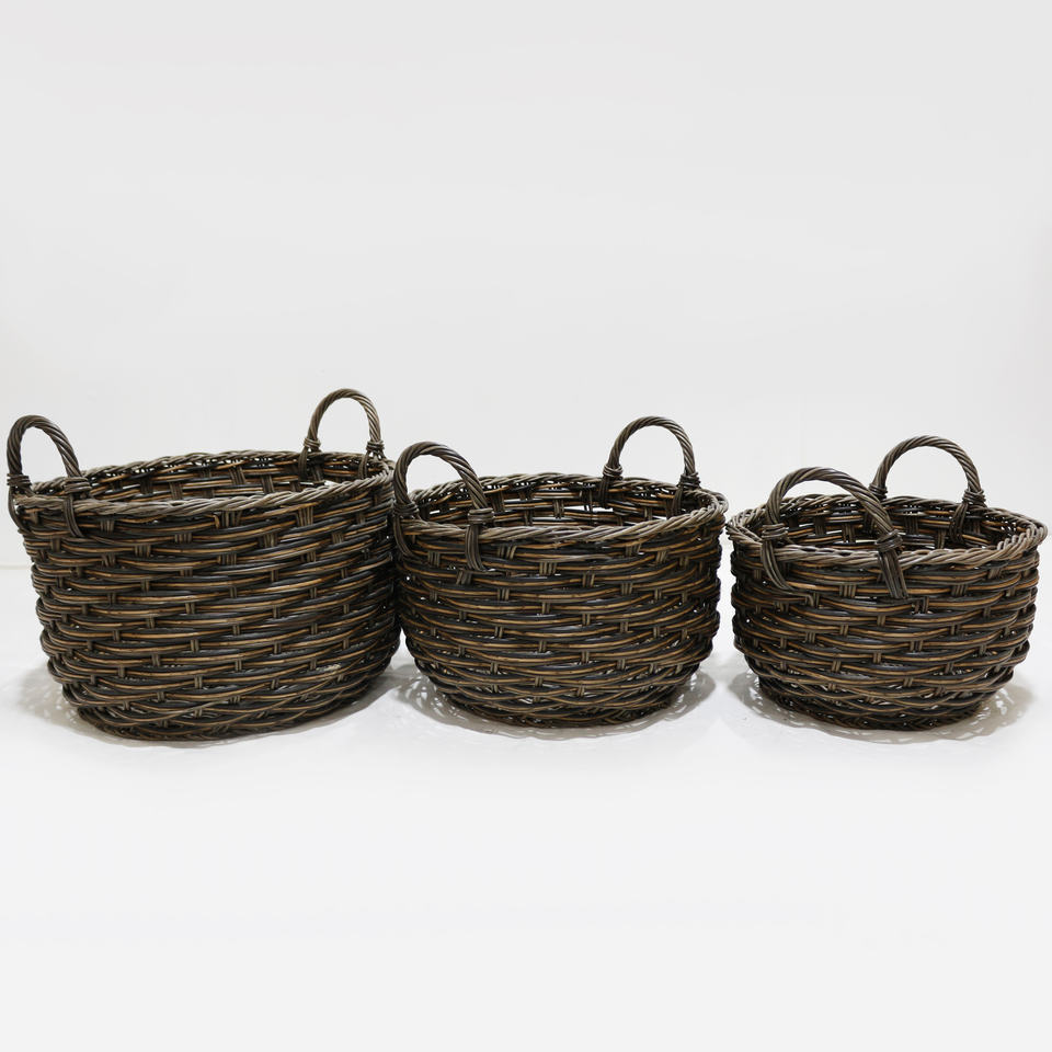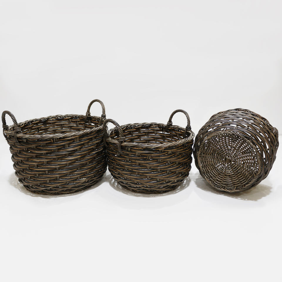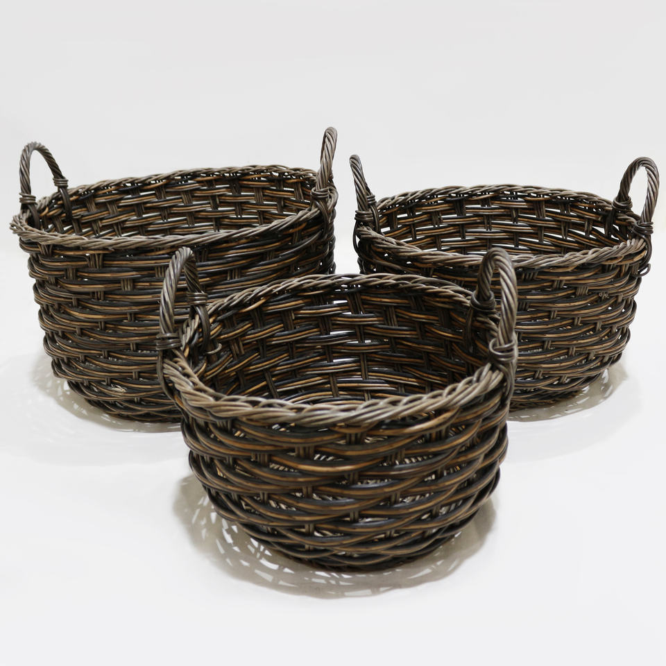 Nombre del producto:Conjunto de 3 cestas redondas de poli Ratán