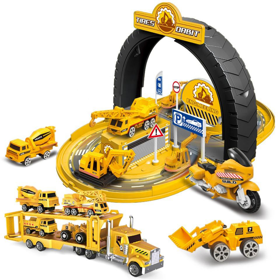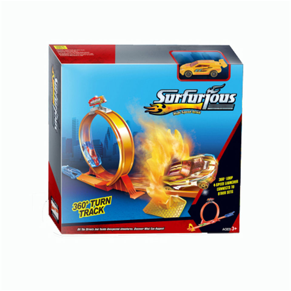 Caja color Fabricante 2023 nuevo lanzador de resorte de plástico rápido catapulta Rail Race Car Set bloque de construcción 360 grados Loop pista de juguete para niños