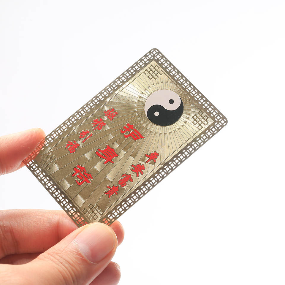 Fabricante precio barato grabado Metal tarjeta Lucky Fortune Foca negocio regalo amuleto Metal oro brillante tarjeta budista