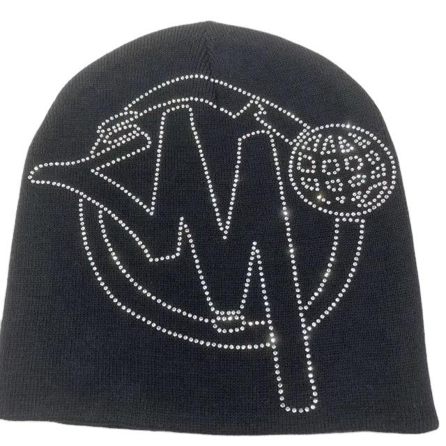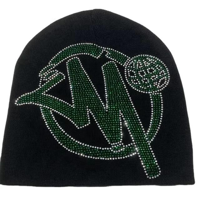 Gorro de Punto Personalizado de Fábrica, 100% Acrílico, con Pedrería, Diseño a Cuadros, Bordado a Mano, Transpirable, Impermeable, Unisex, para Playa y Viajes