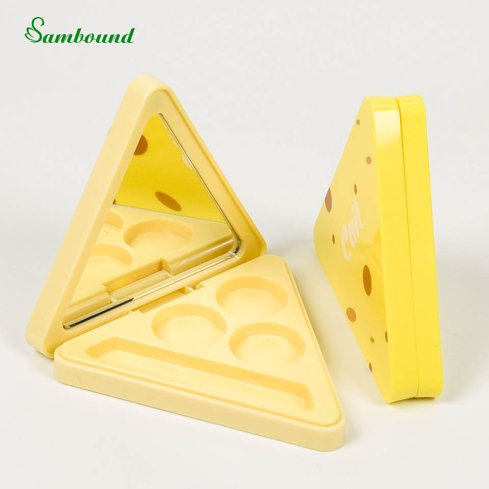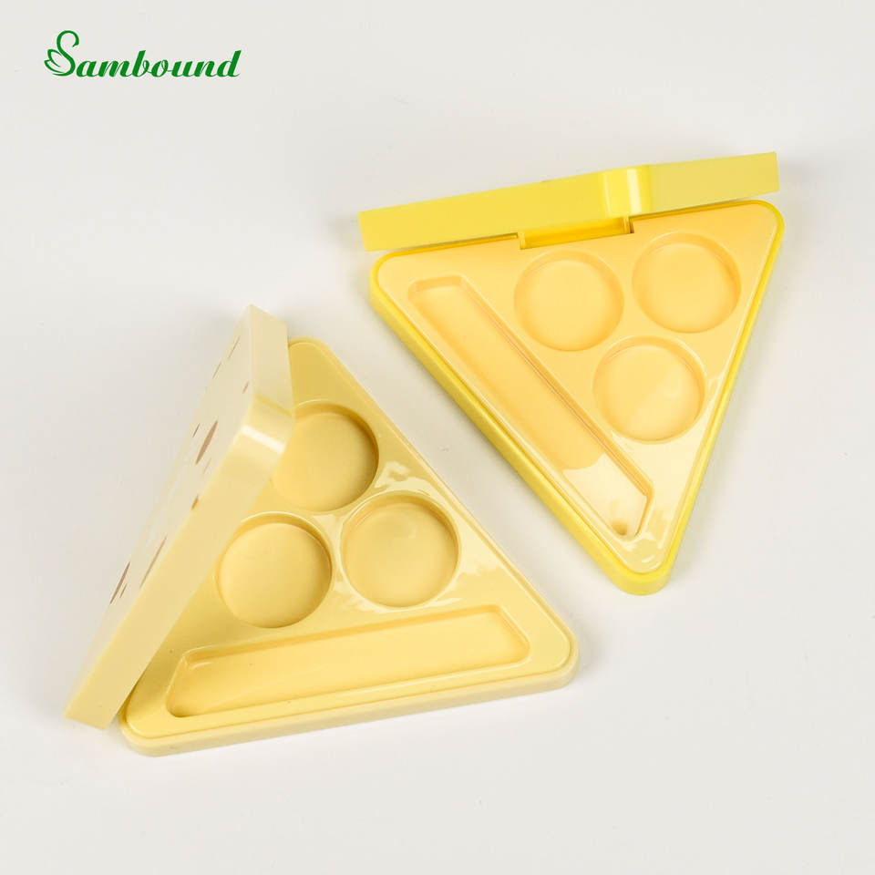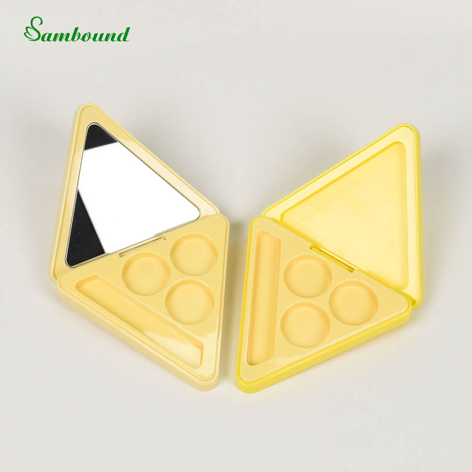 Paleta de sombras de ojos magnética de 3 colores con logotipo serigrafiado, ranura para brochas y estuche vacío moldeado por inyección brillante personalizado por el fabricante