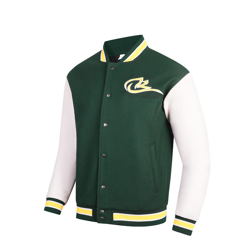 Fabricante de logotipo personalizado de los hombres de invierno al aire libre chaqueta de gran tamaño Varsity estilo de béisbol con bordado de cuero de manga fanáticos de los deportes