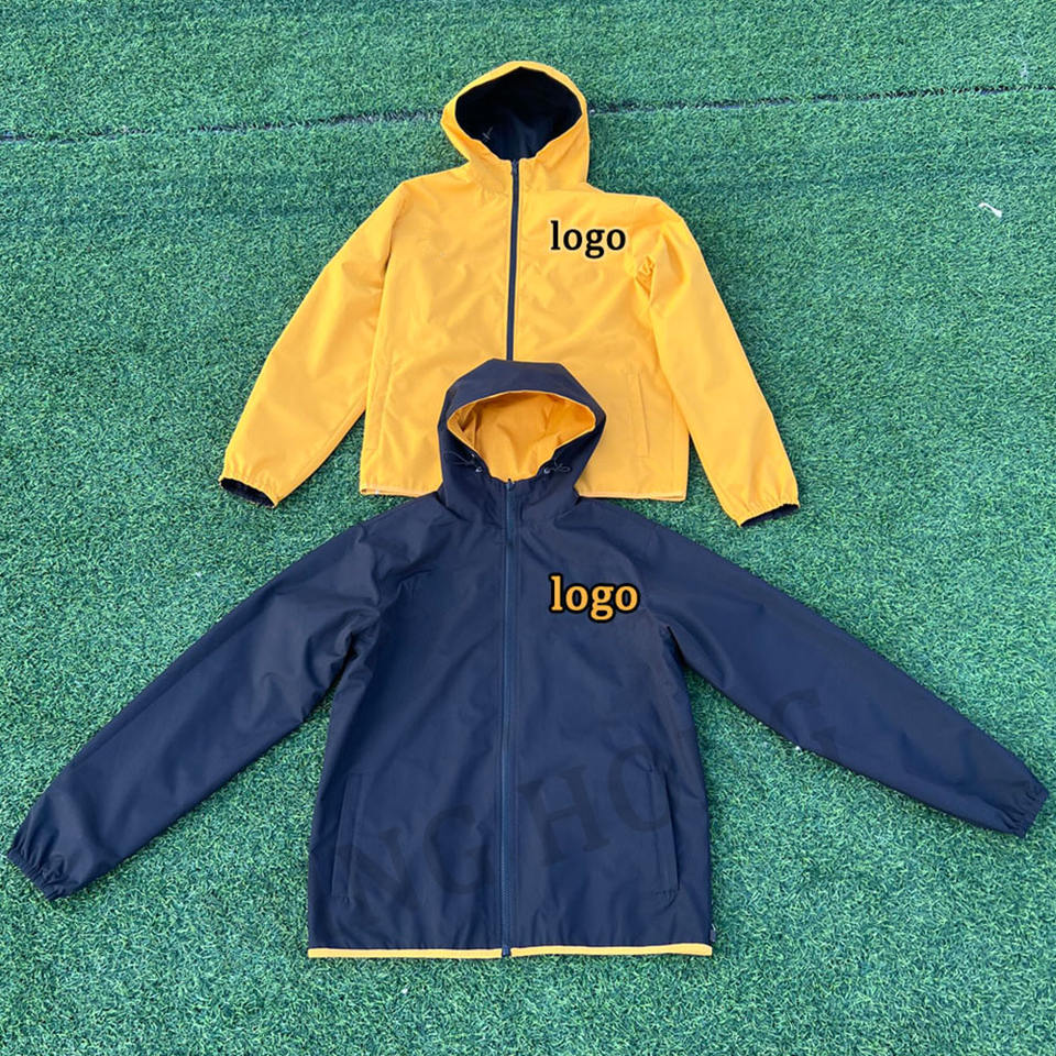 Chaqueta reversible personalizada de fabricante, chaqueta cortavientos impermeable con bolsillo lateral y cremallera ajustable