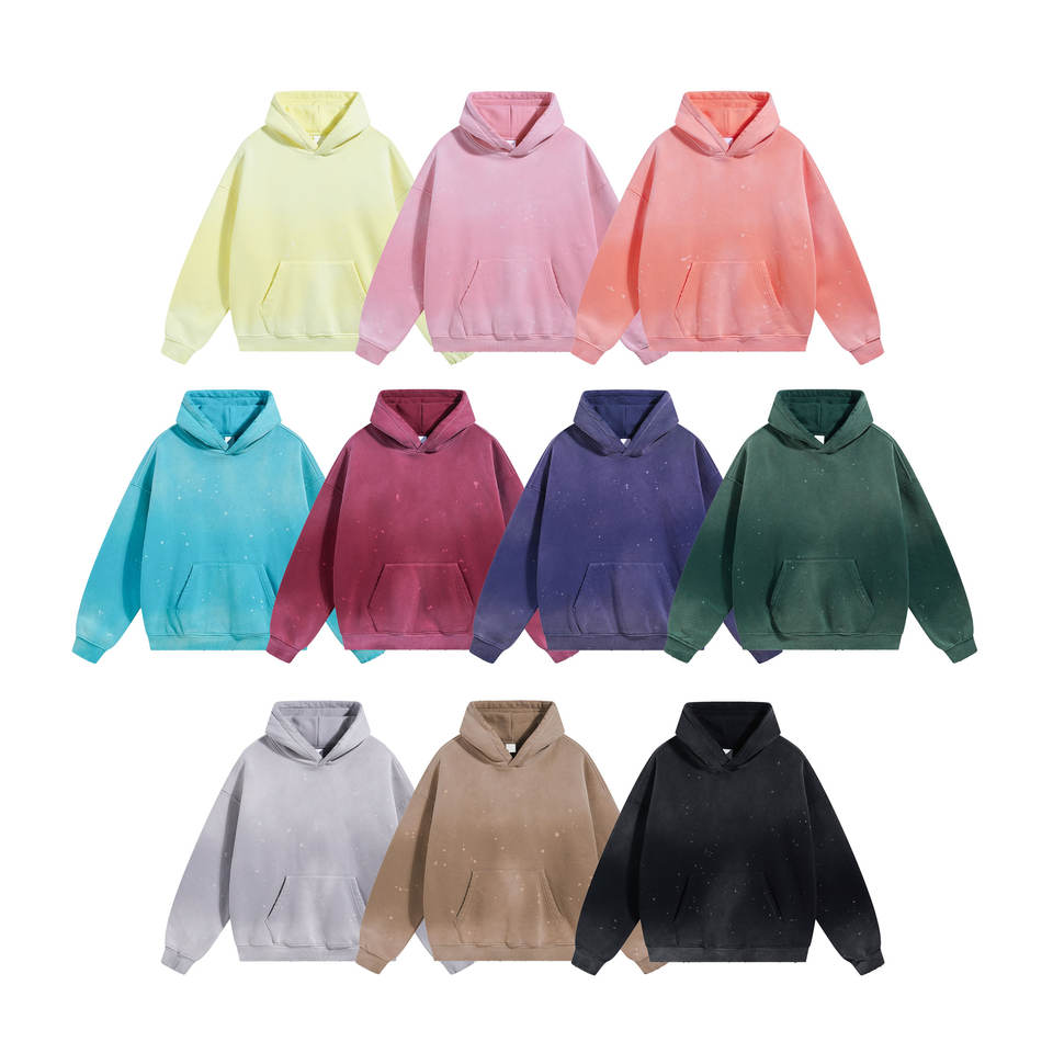 Fabricante personalizado Splash Ink 360GSM Hombres Spray Dyed Hoodies Acid Wash Fleece Distressed Raw Edge Sudaderas con capucha para hombres