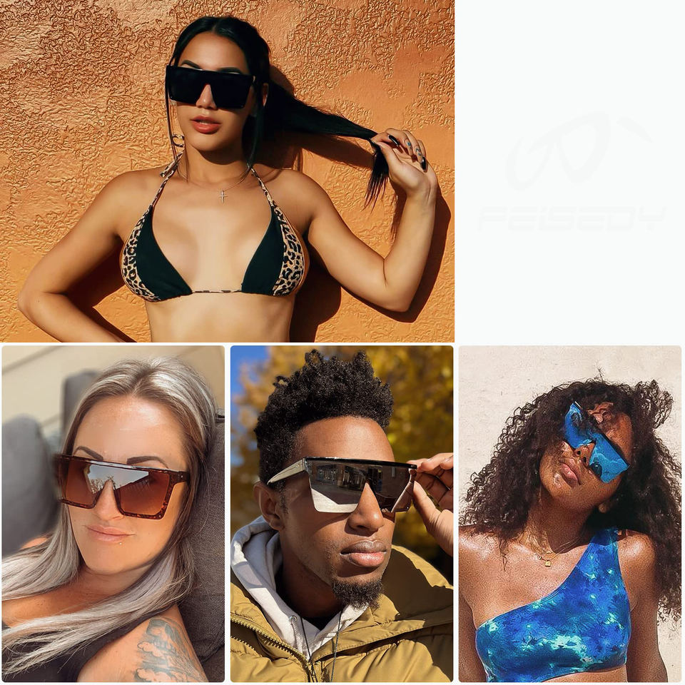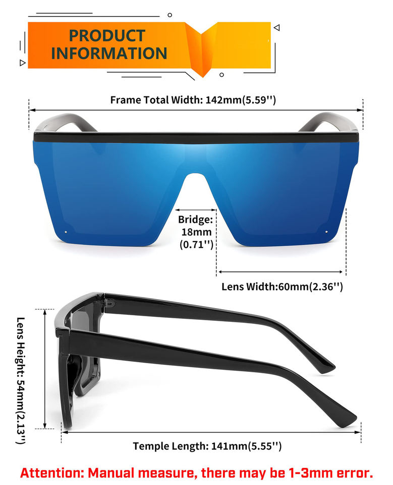 Gafas de Sol Cuadradas Retro de Montura Grande Personalizadas por el Fabricante, Gafas de Sol de Una Pieza para Mujer, Lentes Verdes Espejo de Alta Calidad para Hombre
