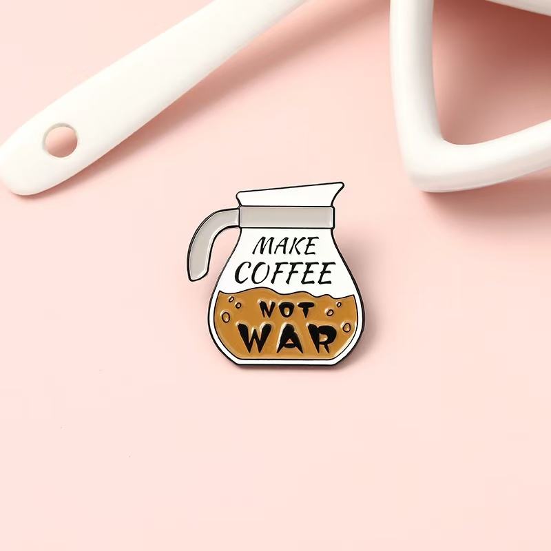 Fabricante Mayorista de Insignias Metálicas Personalizadas con Impresión de Logotipo, Diseño de Etiqueta, Sublimación, Insignias de Esmalte con Forma de Cafetera