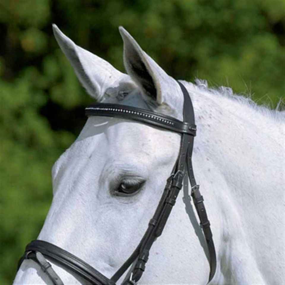 Brida patentada enrollada de cuero suave diseñada por el fabricante para caballos