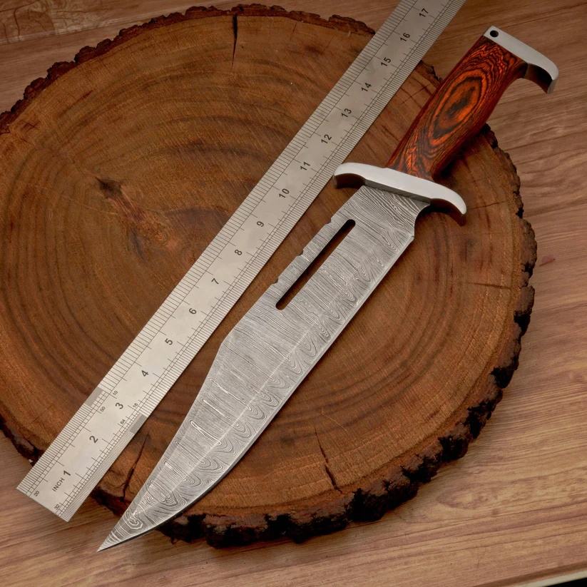 Cuchillo Bowie de Hoja Fija de Alta Calidad, Fabricado a Medida, Personalizable, Directo de Fábrica, OEM, para Caza y Desollado, de Acero de Damasco y Madera de Palisandro