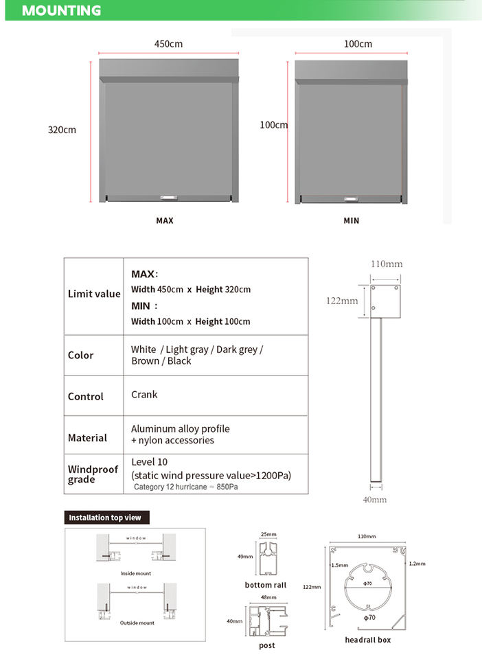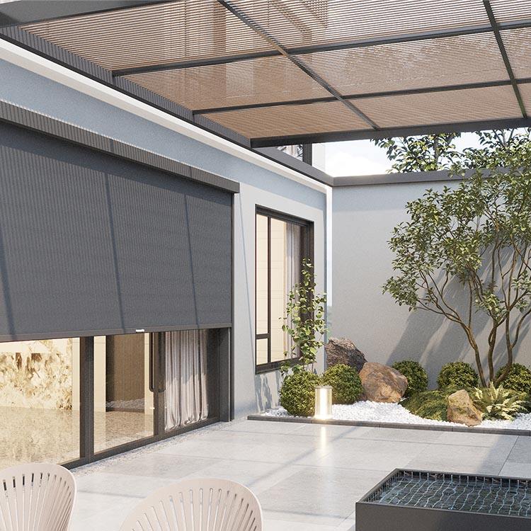 Fabricante directo pantalla retráctil rodillo cremallera pista sistema ciego para Patio balcón restaurante Gazebo