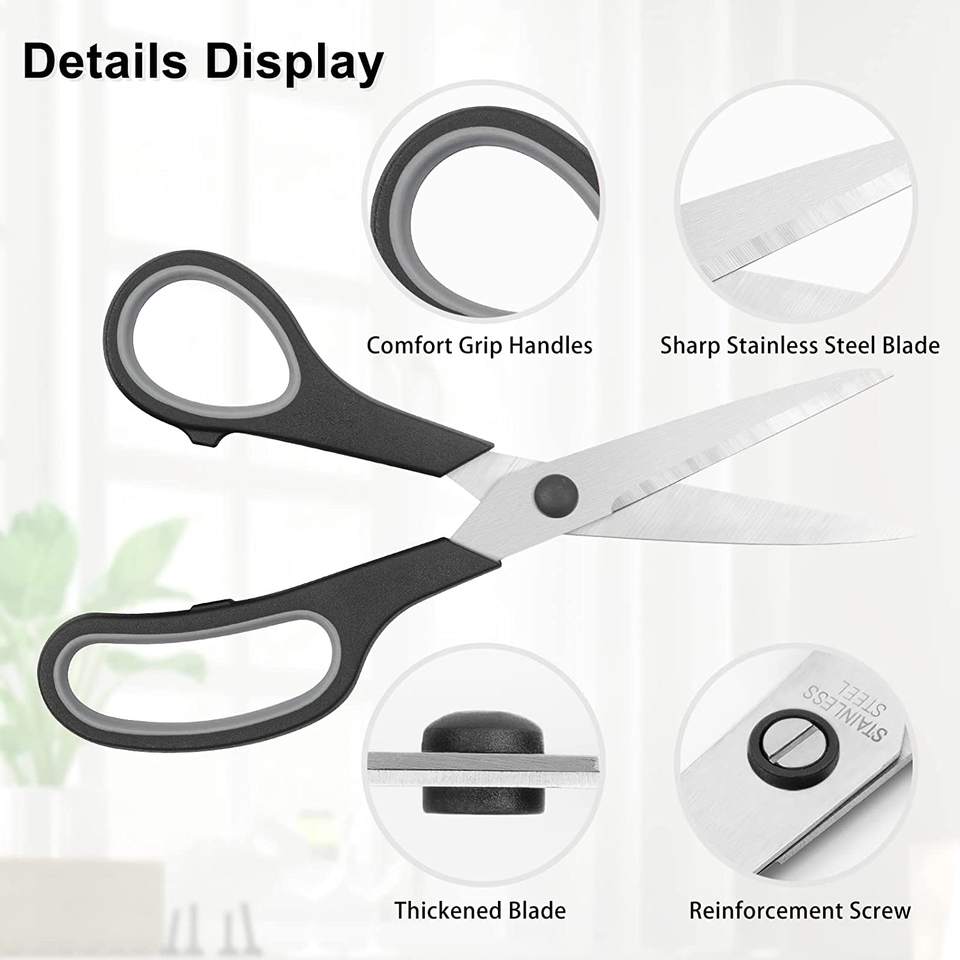 Venta directa del fabricante: tijeras de papel de plástico de acero inoxidable multifuncionales personalizadas con mango de agarre para uso doméstico y de oficina
