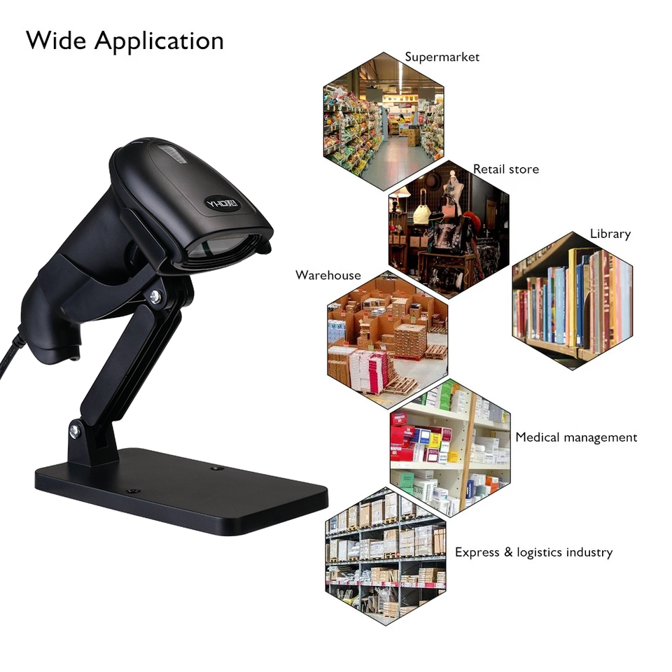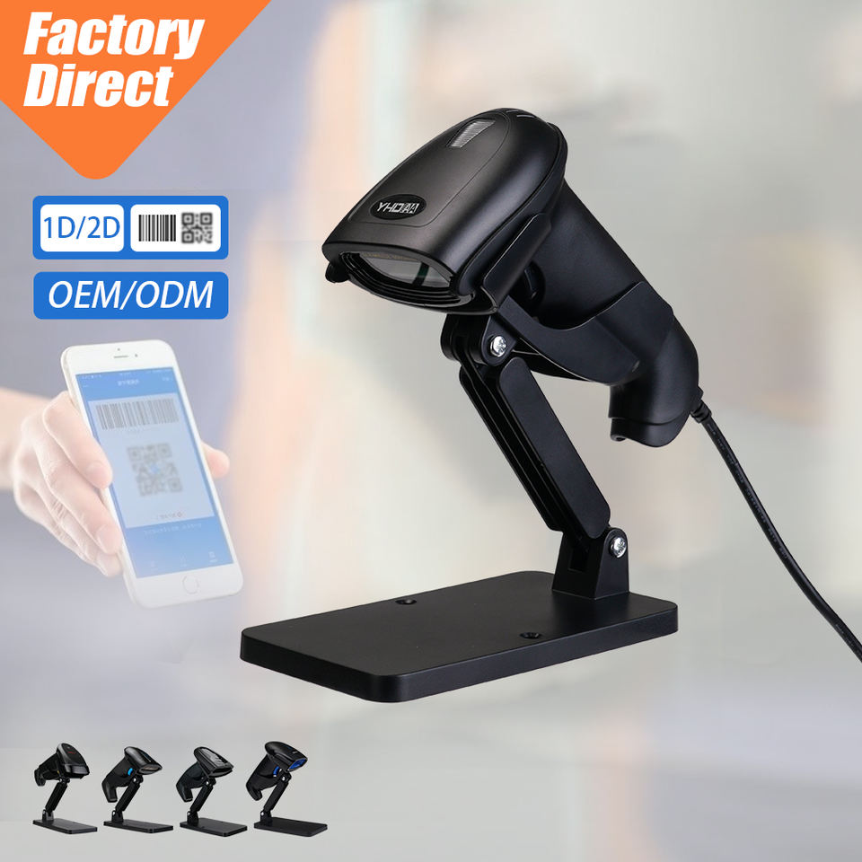 Escáner de Códigos de Barras 2D con Soporte Ajustable, Venta Directa de Fábrica, Compatible con Códigos de Barras Comerciales, Farmacéuticos, Postales y Cubiertos con Película