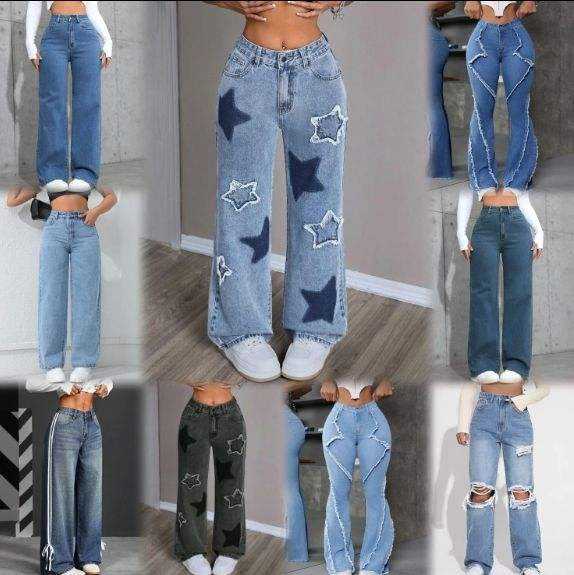 Jeans Multifuncionales Elegantes y Cómodos de Cintura Alta y Pierna Ancha para Mujer, Entrega Aleatoria, Directo de Fábrica