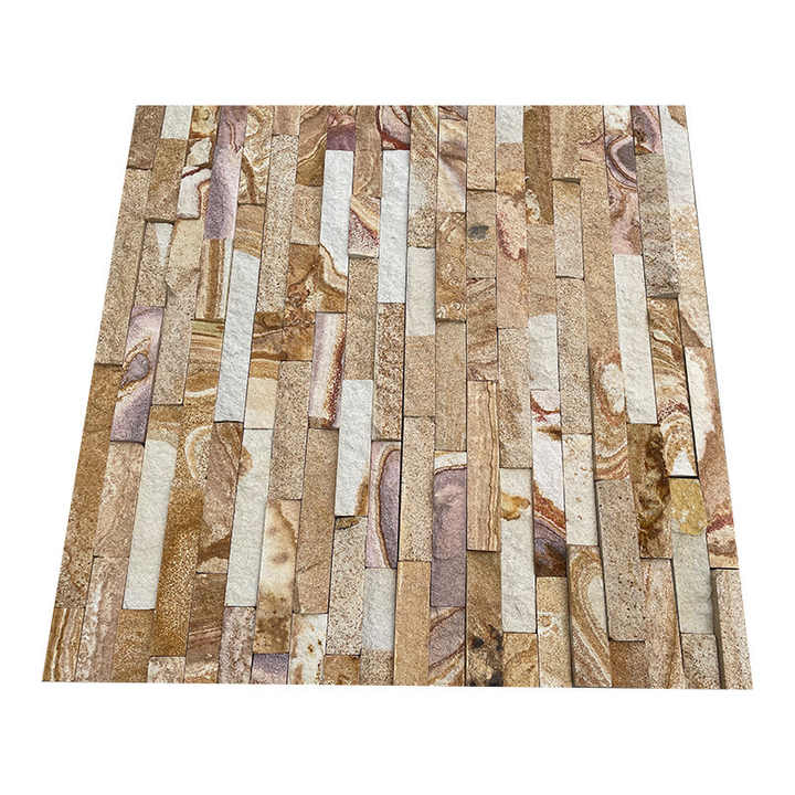 Fabricante directo amarillo cálido superficie dividida antiácido diseño moderno piedra de cultivo lineal para Hotel Villa fachadas exteriores