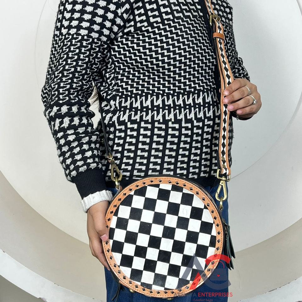 Type:Checkered Leather Round Shoulder Crossbody Bag
