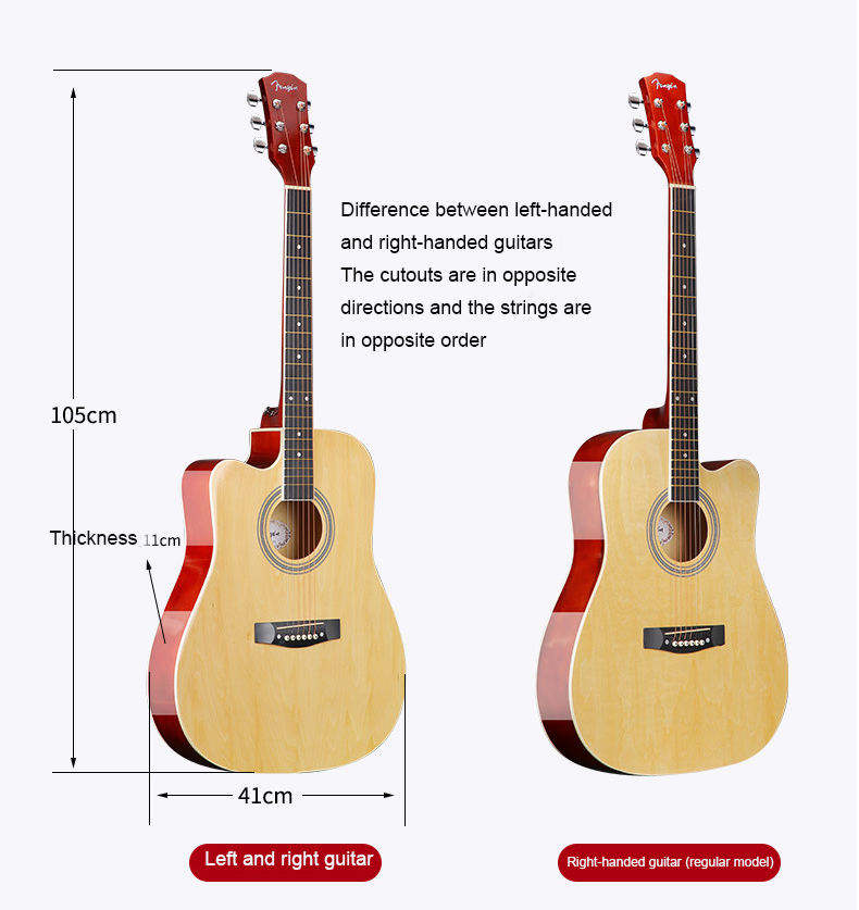 Guitarra acústica clásica brillante para zurdos, servicio OEM de 41 pulgadas personalizado de alta calidad de fabricante para niños adultos principiantes