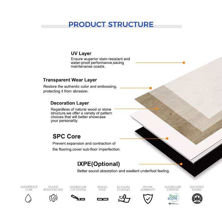 Losetas de Vinilo para Piso, Sistema de Clic, Precio de Fábrica, Tablas de Madera de Vinilo Plástico, Suelos SPC de Lujo, Policloruro de Vinilo Moderno para Interiores con Protección UV