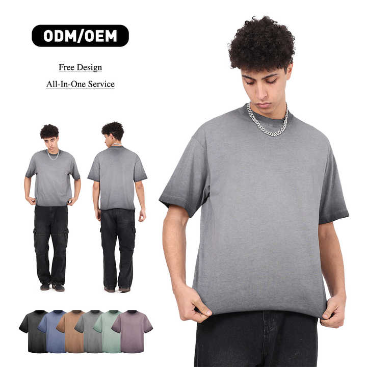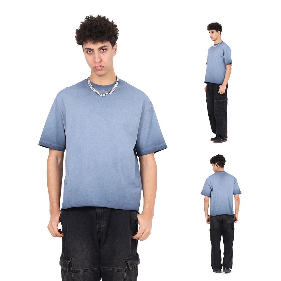 Camiseta Vintage Holgada para Hombre, de Algodón Puro 275GSM, con Efecto Desgastado y Deshilachado, Color Base Invertido del Fabricante