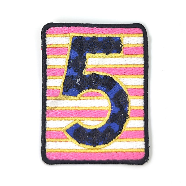 Fabricante que vende exquisitos parches bordados de flores en 3D, ropa cosida multitécnica, número de la suerte 5, lona de goma de chenilla