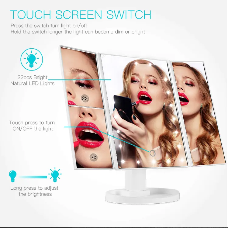 Fabricante que vende lupa de pantalla táctil Led plegable portátil de escritorio HD espejo cuadrado giratorio de 180 grados espejo de maquillaje
