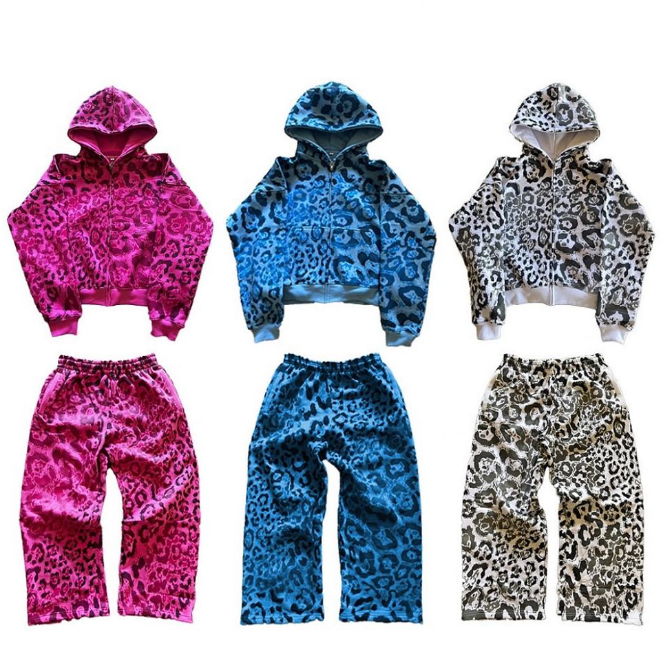 Sudadera Corta de Algodón Grueso con Estampado de Leopardo y Pedrería, Lavado Ácido, Estilo Urbano, Personalizada, para Hombre, Impresión DTG Completa