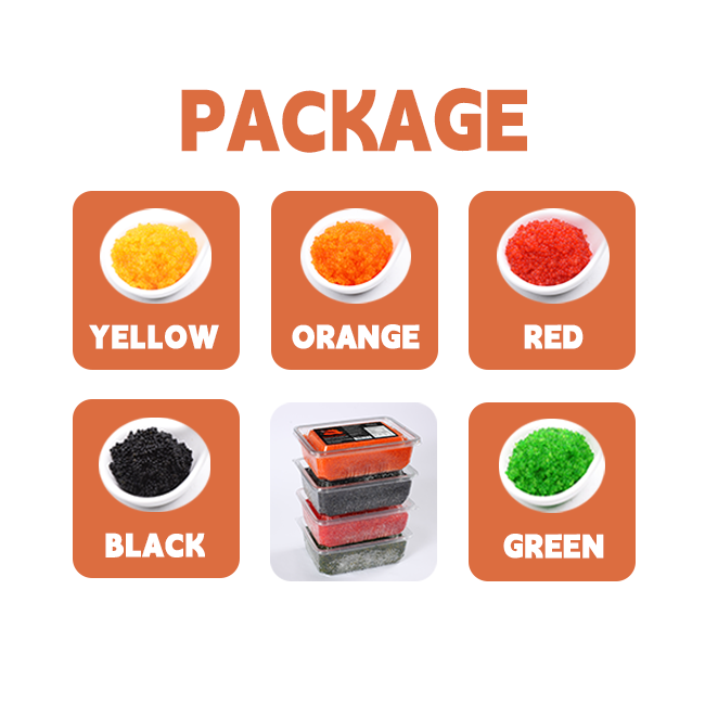 Fabricante de huevas de pescado multicolores Halal tobiko/huevas de pez volador para sushi