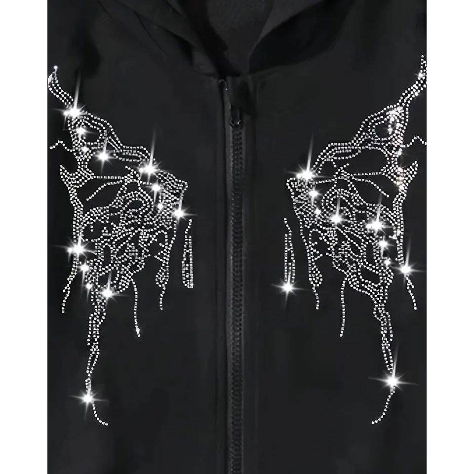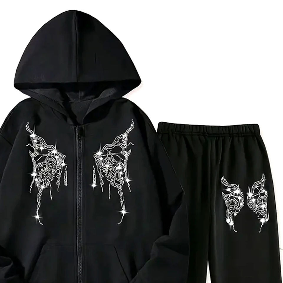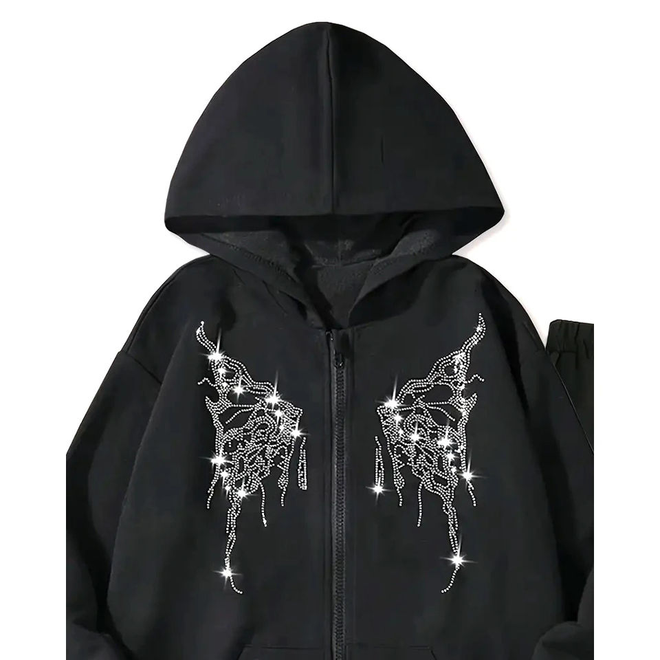 Conjunto Deportivo de Dos Piezas con Capucha y Pedrería para Invierno, Fabricante, Manga Larga, Holgado, Felpa, Unisex