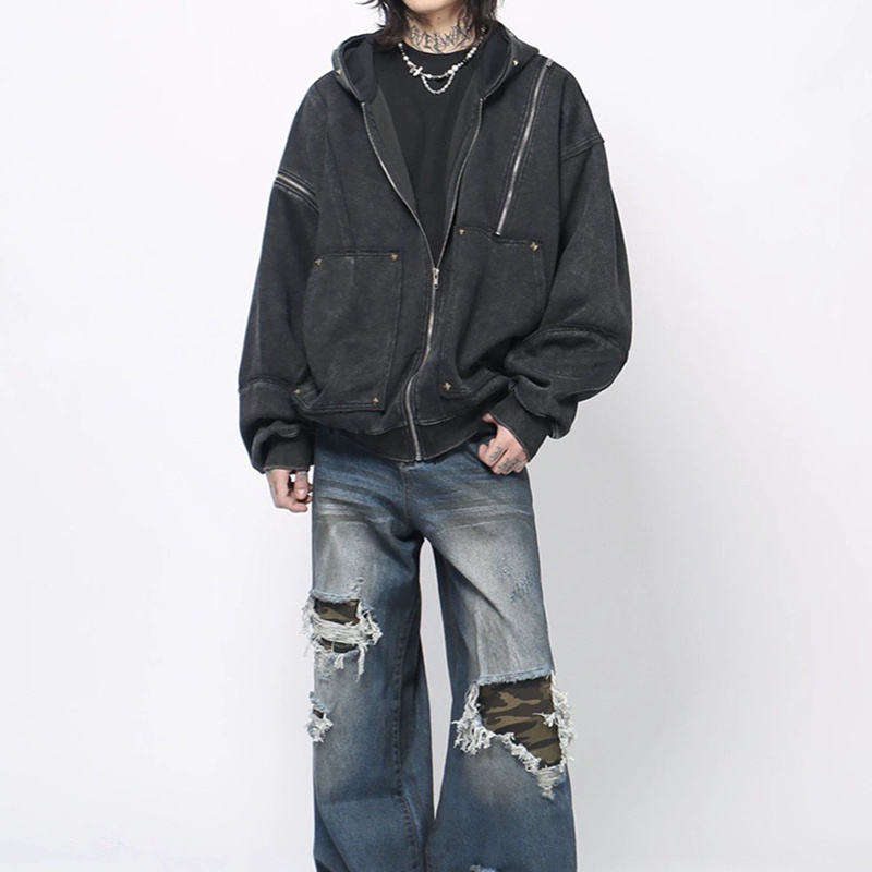 Fabricante al por mayor logotipo personalizado bordado 100% algodón hombres de tela de punto Street Old Vintage Hip Hop Sun Faded Pullover