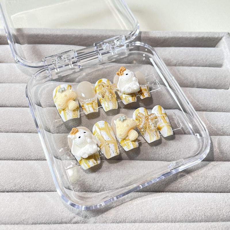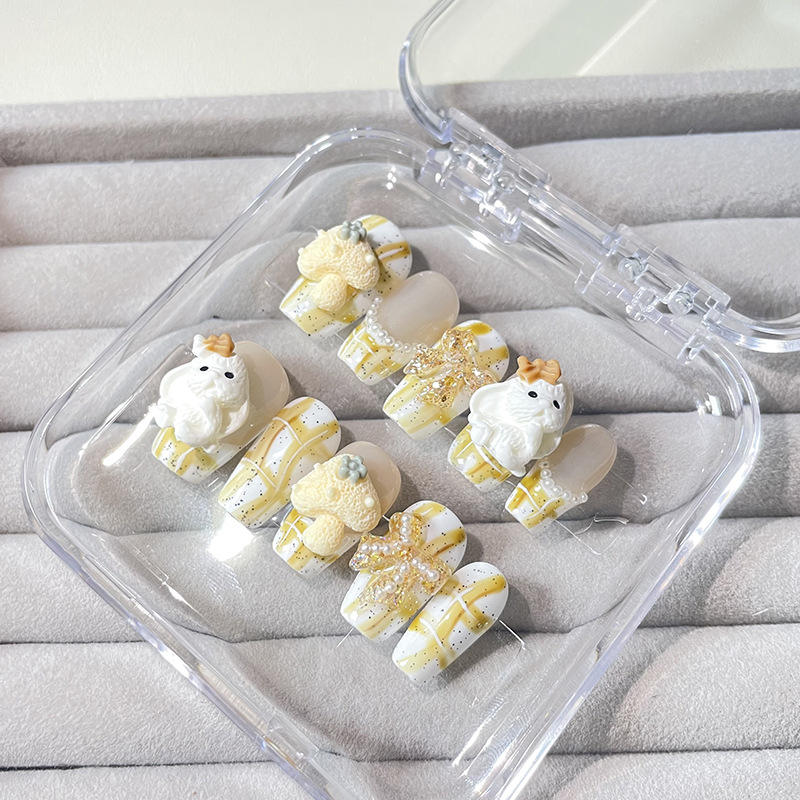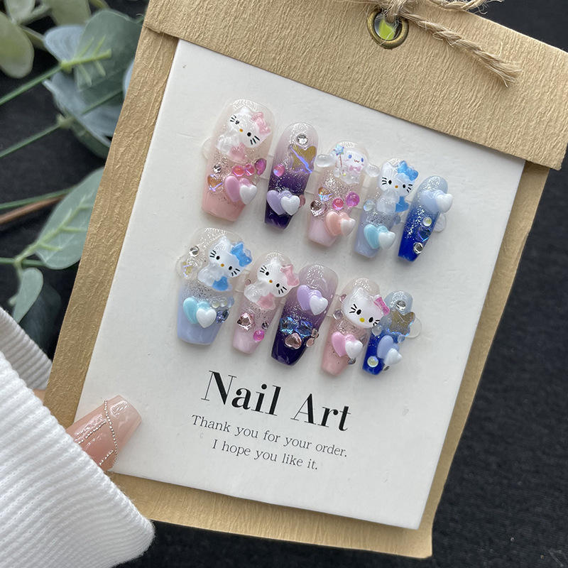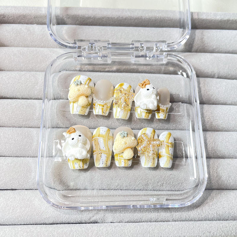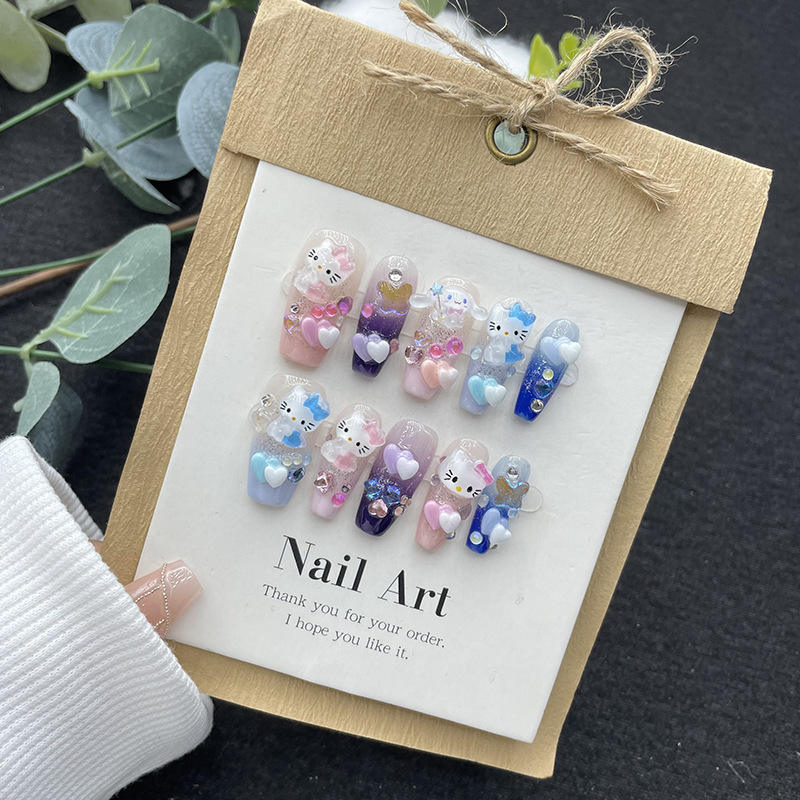 Fabricante al por mayor conejo dibujos animados chica estilo gatito gel colorido tridimensional lindo femenino uñas hechas a mano