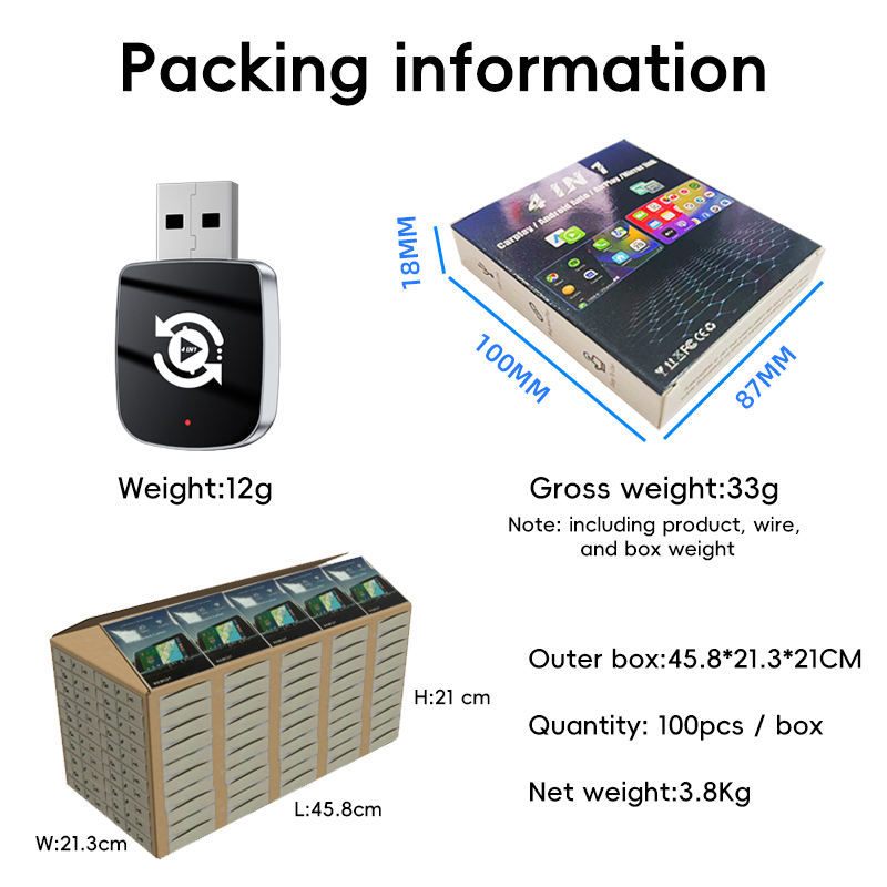 nombre:Adaptador CarPlay 4 en 1 del fabricante