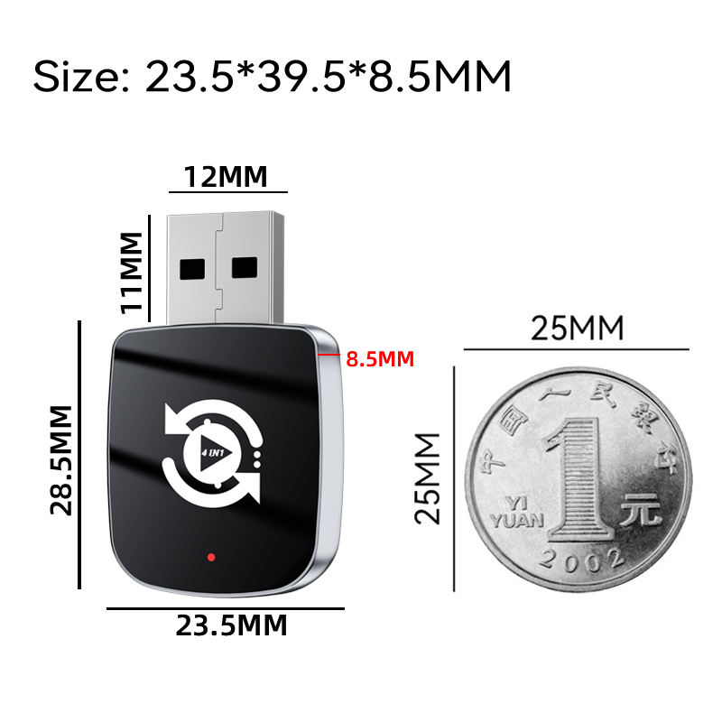 Adaptador Inalámbrico para Auto 4 en 1 con CarPlay, Android Auto, Mirror Link y Airplay, Mini Adaptador USB CarPlay