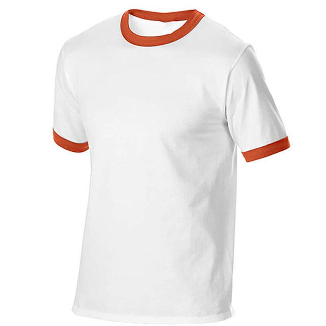 Camisetas de hombre con logotipo personalizado del fabricante Diseños de costilla de algodón 100% Blanco liso con mangas de cuello de otros colores