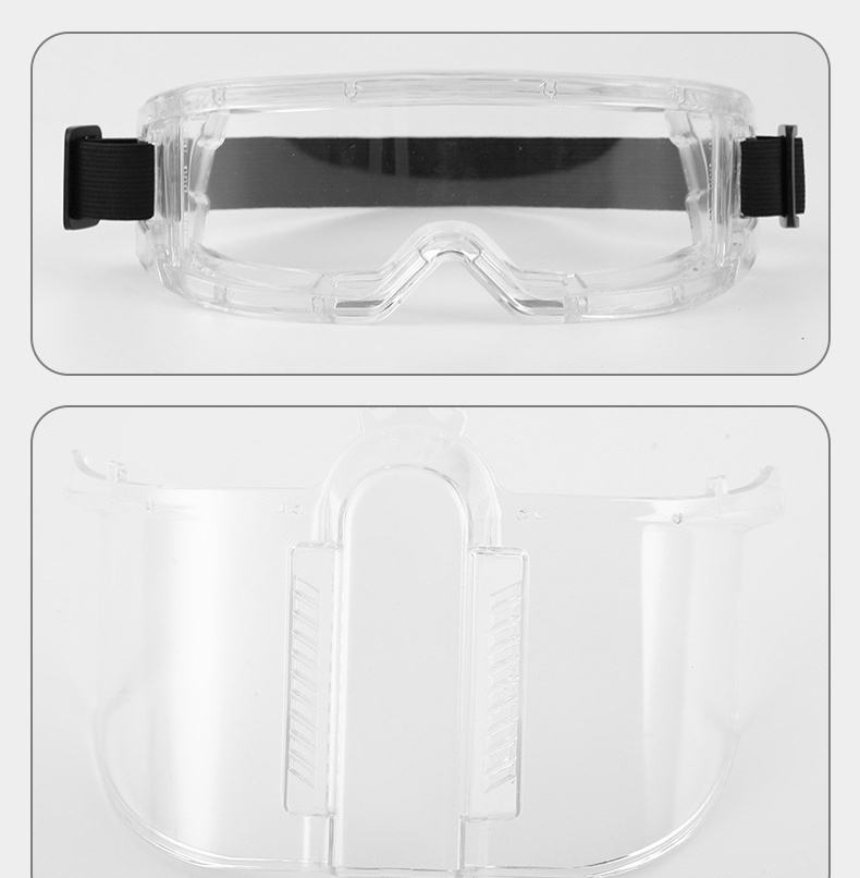 Pantalla facial protectora montada en la cabeza en stock del fabricante para evitar salpicaduras Diseño antiniebla con filtros reemplazables
