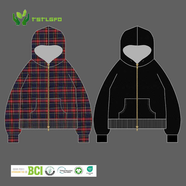 Chaqueta de hombre personalizada de doble capa, reversible, con cremallera, ecológica, impermeable, de corte regular y frente de doble franela.