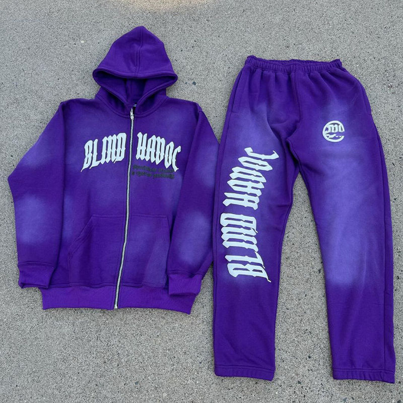Fabricantes personalizado impreso bordado Logo invierno Sudadera con capucha conjunto Vintage desgastado lavado ácido para hombre chándales Jogger conjunto acampanado