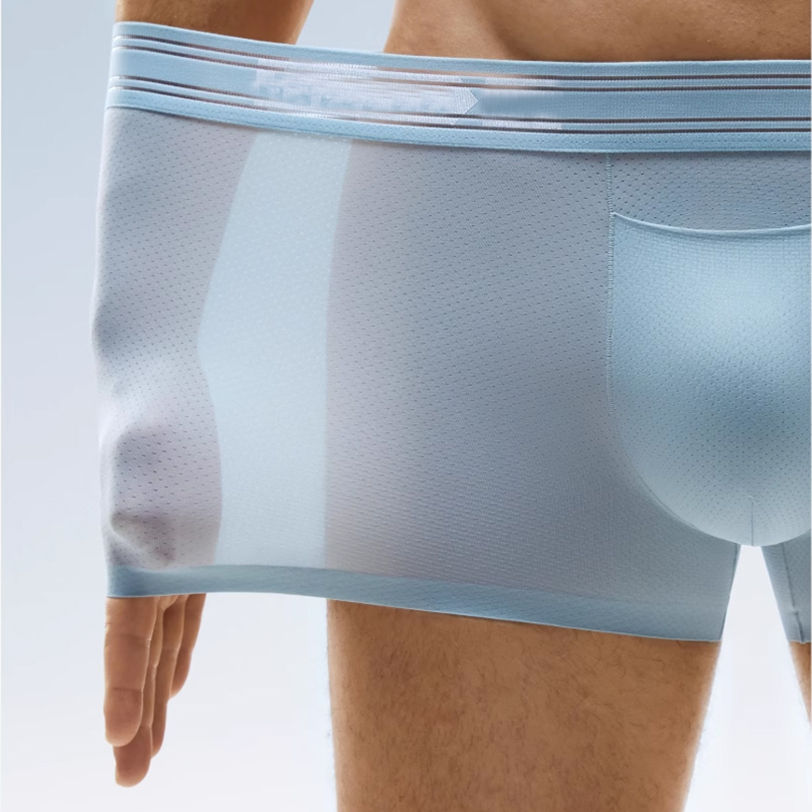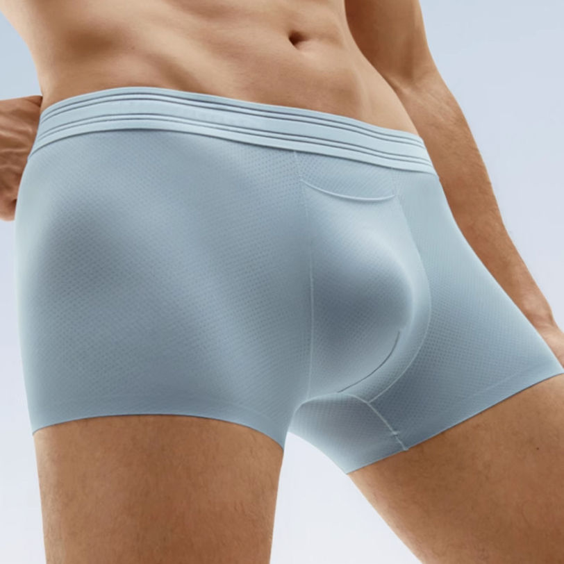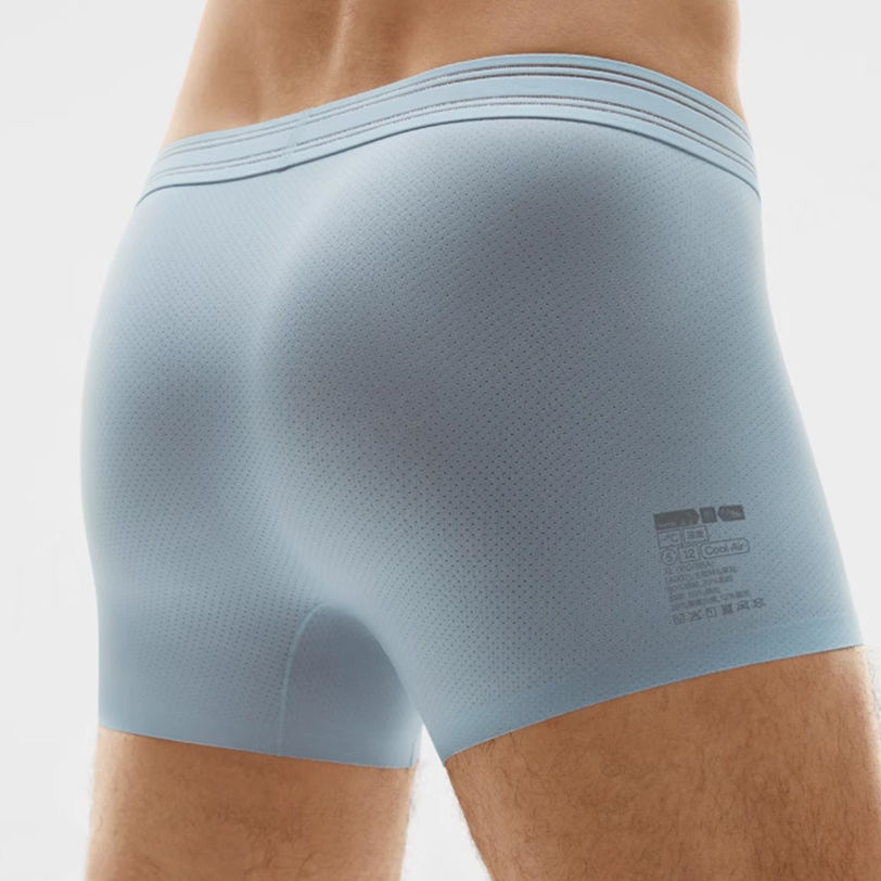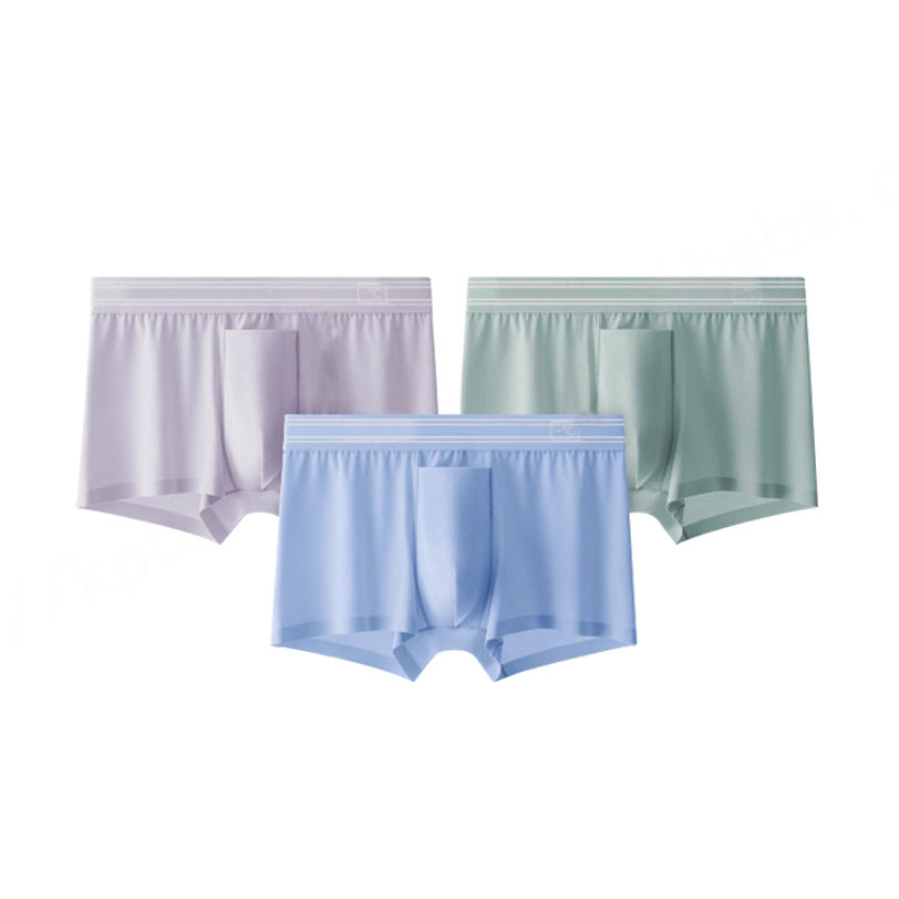 Calzoncillos bóxer de corte medio para hombre, transpirables, con bolsa frontal de ángulo plano, de seda helada y nailon, de alta calidad.