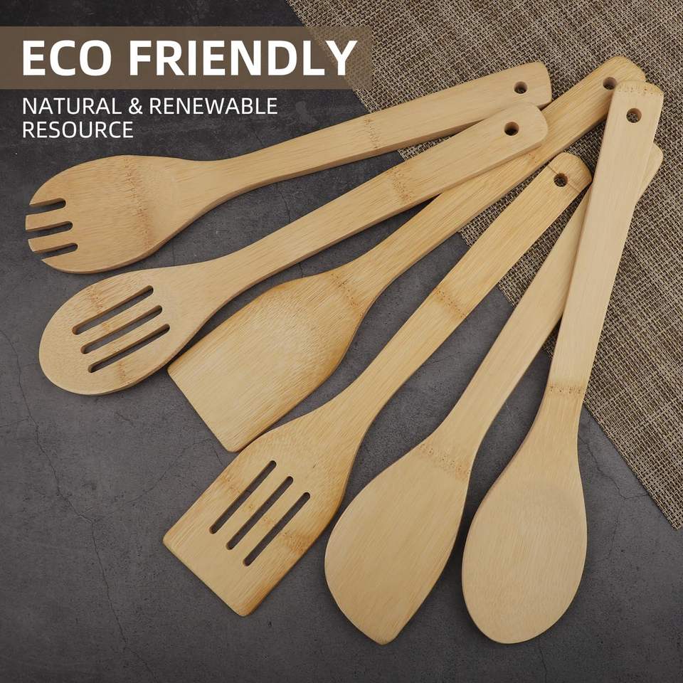Nombre del producto:Conjunto de cuchara de bambú para cocinar conjunto de 6 piezas
