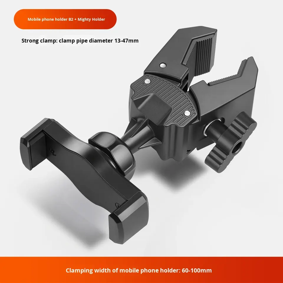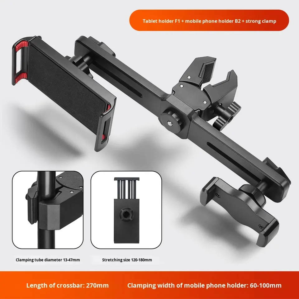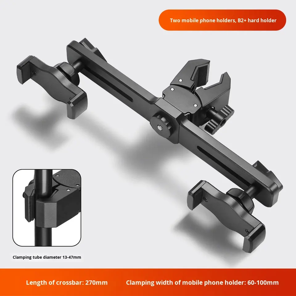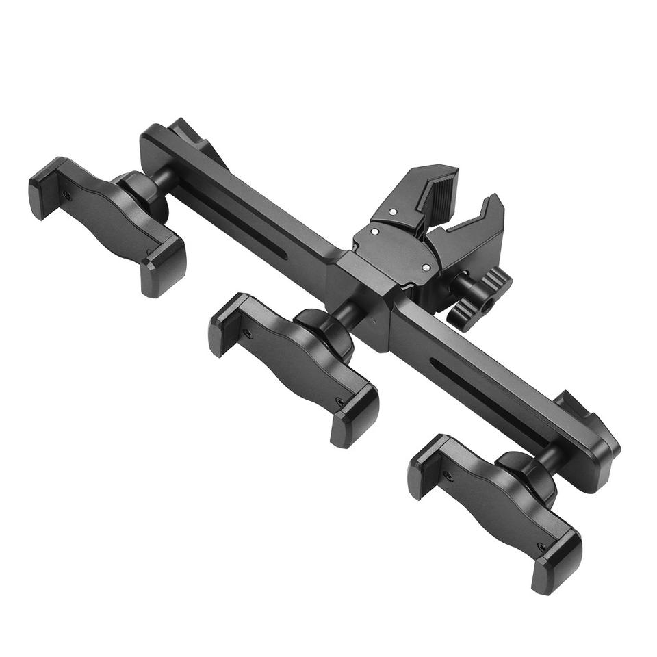 Muchas opciones Soporte práctico 360 Abrazadera fuerte de liberación rápida giratoria Universal Tablet Tres adaptador de montaje de trípode de teléfono celular dual