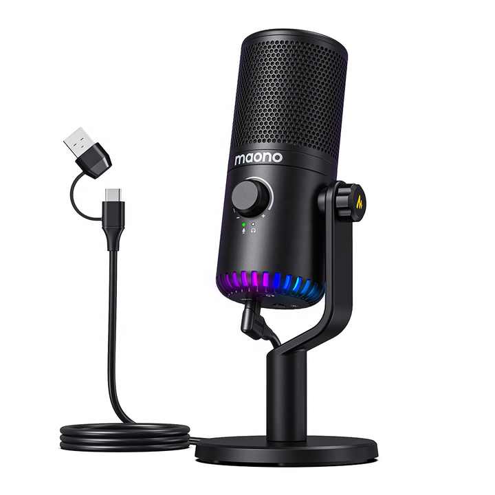Micrófonos de Condensador USB Programables Maono, Micrófono de Condensador de Escritorio para Streaming, Micrófono para Videojuegos PS4 con RGB