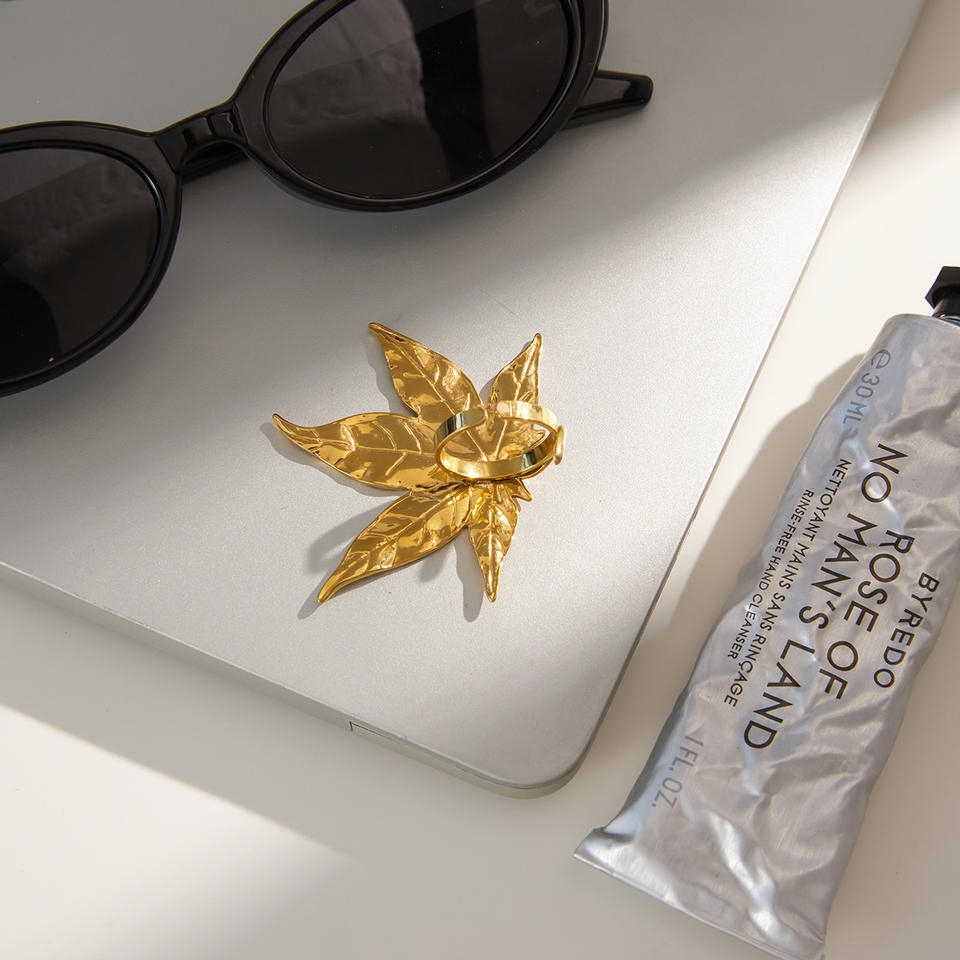 Anillo Abierto de Hoja de Arce en Acero de Titanio Color Dorado, Joyería de Moda Unisex, Regalo